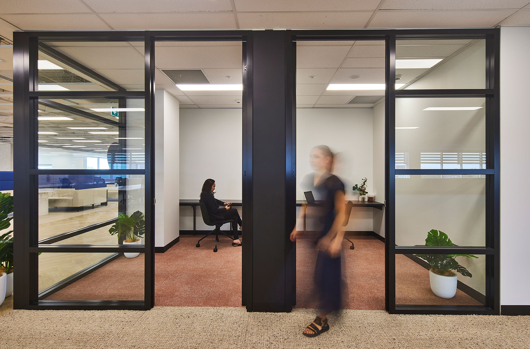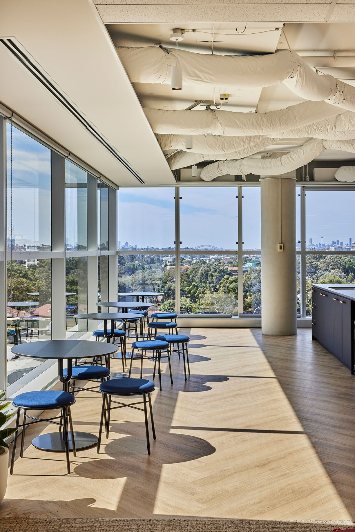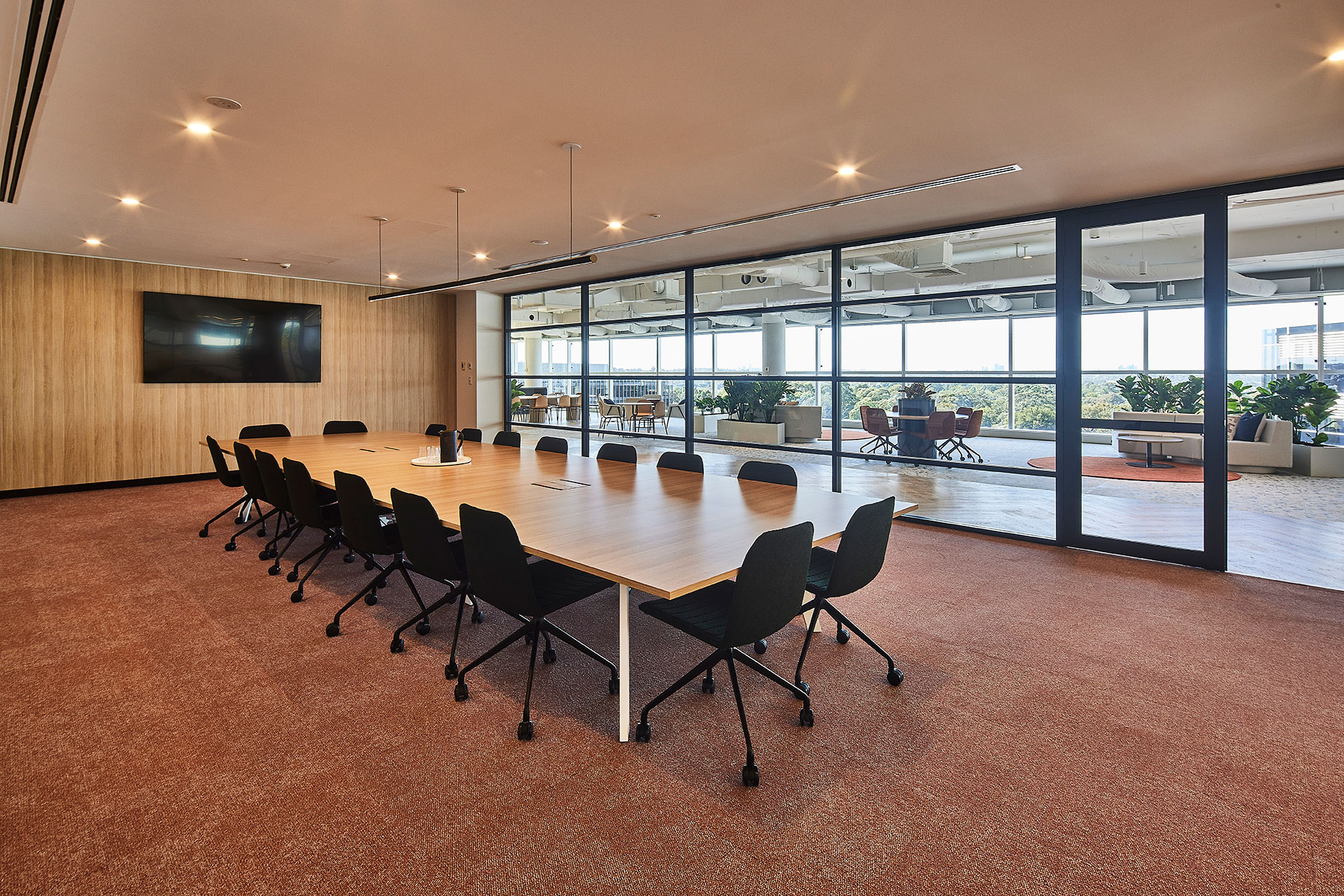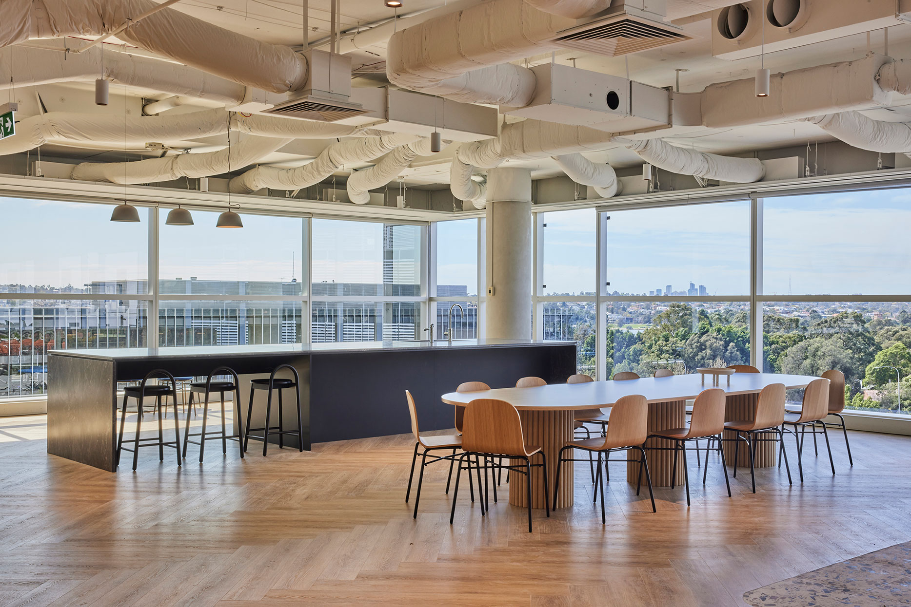 Inspired by Sydney’s coastal heritage, the Display Suite blends warm terracottas, sandy beiges, and oceanic blues to create a sophisticated, nature-inspired workspace. Organic textures, intimate nooks, and a calming palette encourage both collaboration and quiet focus.