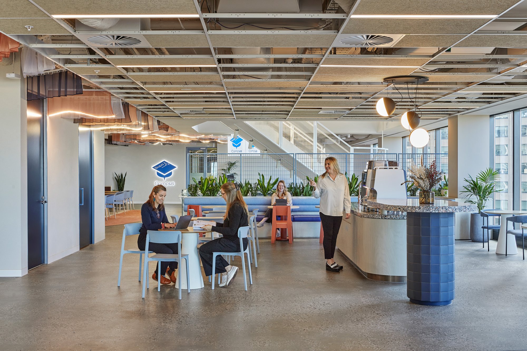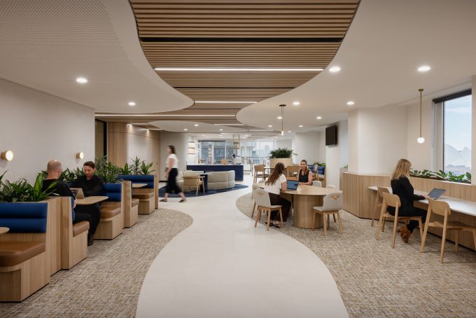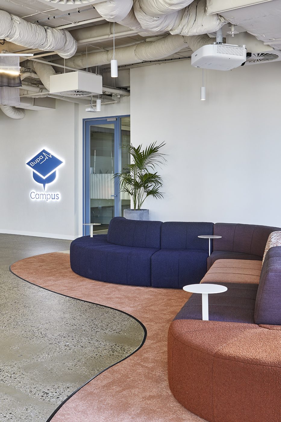 "As you walk through the space, you're greeted with a light-filled, warm tone. You have the subtleness of the Bupa branding and familiar Bupa blue running through the whole space. Soft textures and pops of colour ground the working space experience in place and brand."