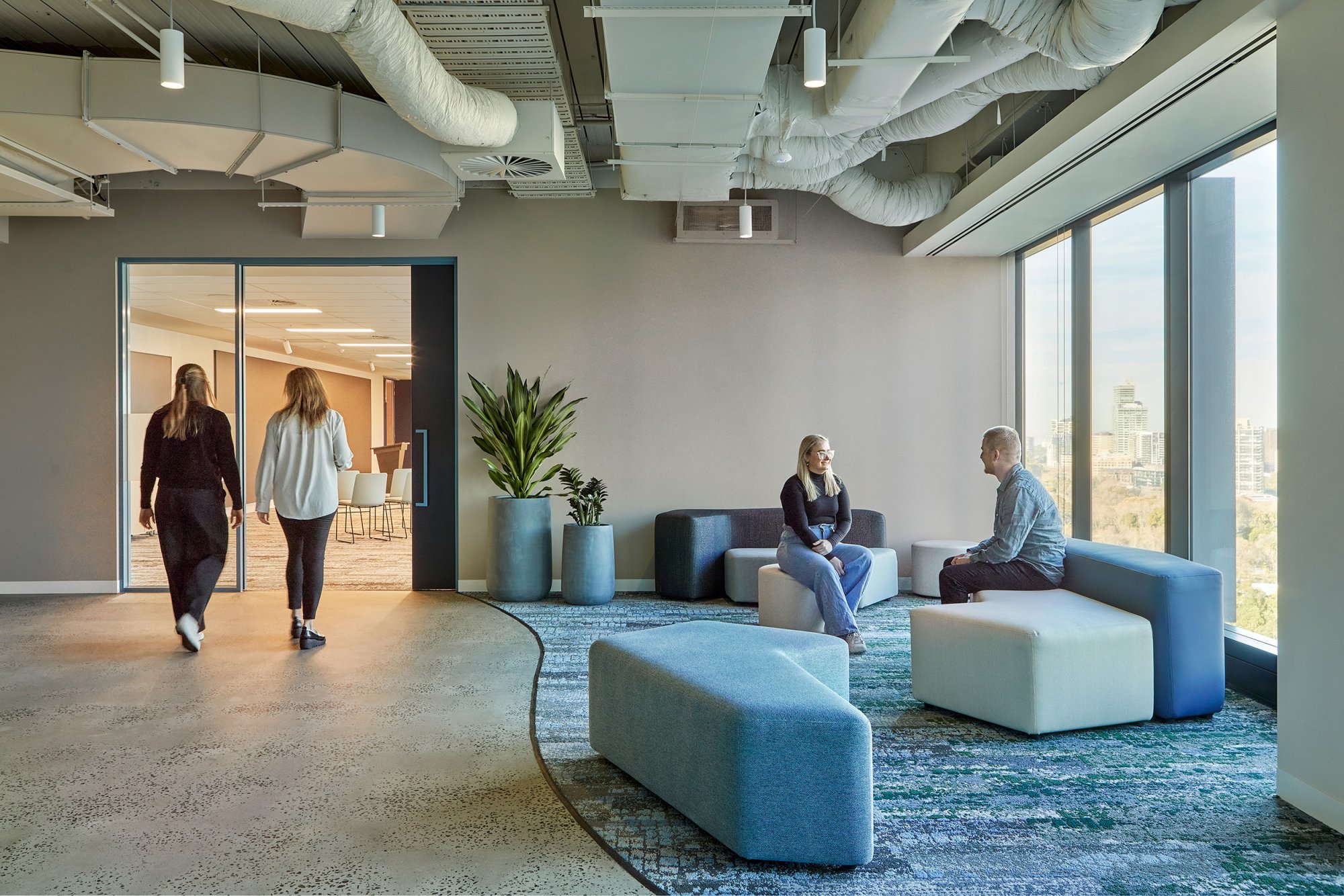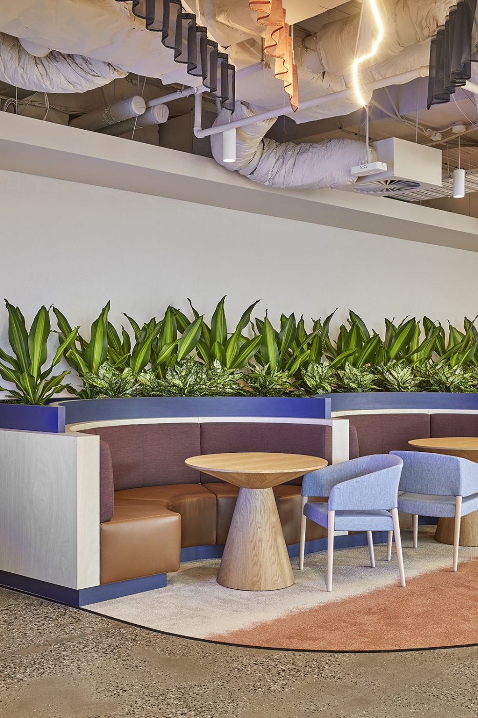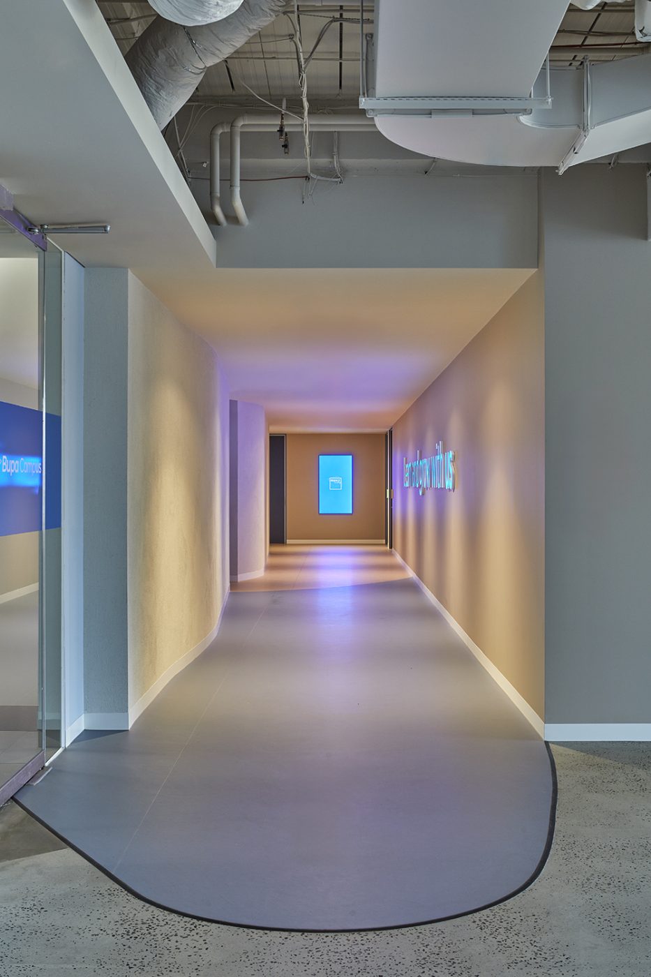 "As you walk through the space, you're greeted with a light-filled, warm tone. You have the subtleness of the Bupa branding and familiar Bupa blue running through the whole space. Soft textures and pops of colour ground the working space experience in place and brand."